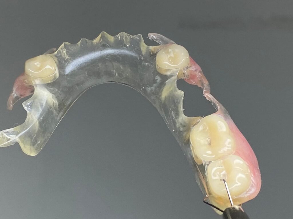 Ao contrário das próteses mais comuns, a PPR não é fixa. Ela funciona como uma espécie de aparelho móvel. Seus grampos metálicos exercem a função de estabilizá-la junto aos dentes naturais.