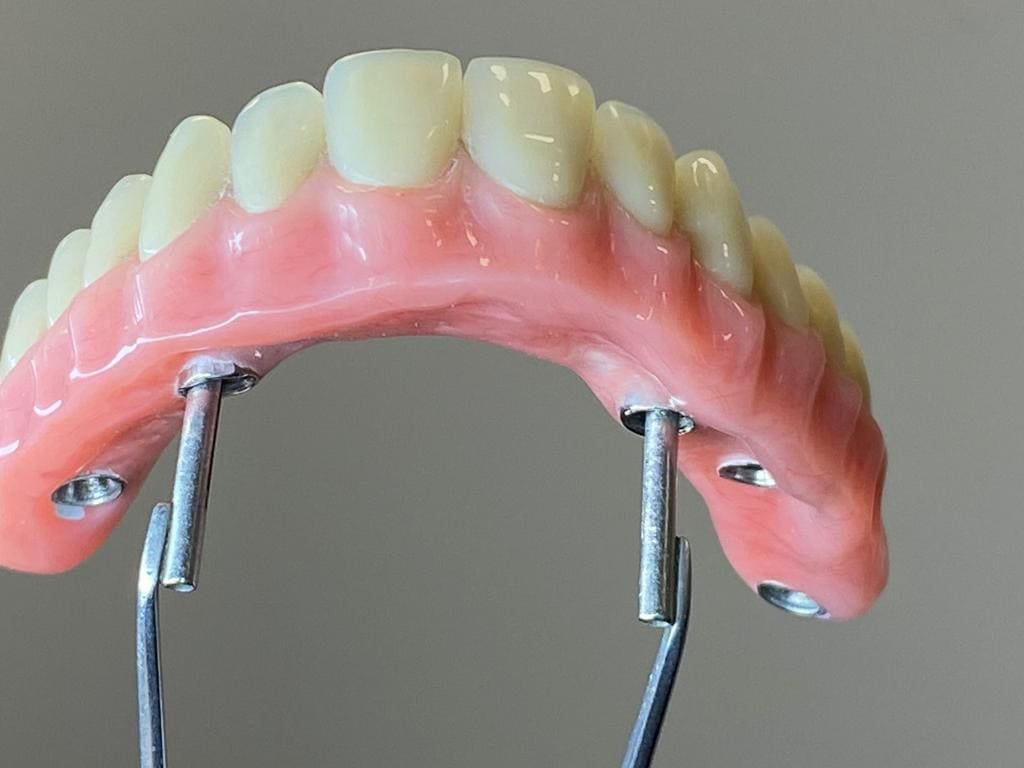 A prótese do tipo protocolo é ancorada através dos implantes dentários que são fixados na parte óssea e assim a prótese é parafusada inteiramente, dando mais segurança para o paciente durante a mastigação.