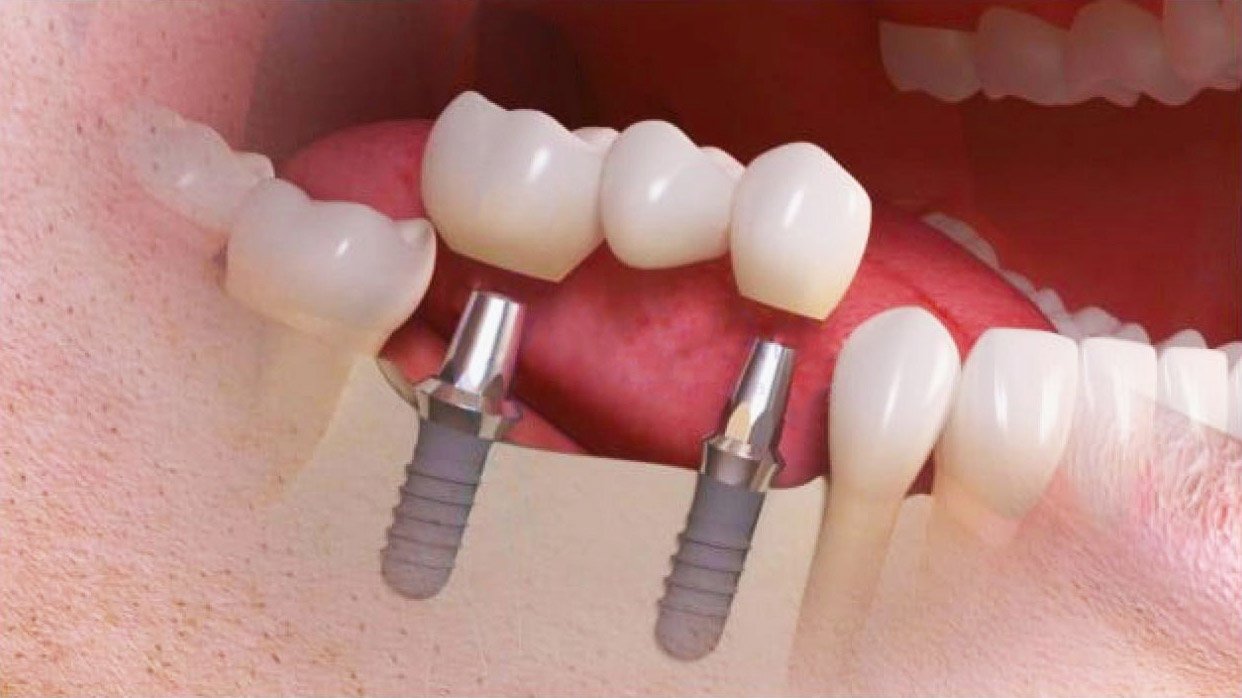 Os implantes são os pinos de titânio que são colocados na arcada, que por serem integrados no osso esses novos dentes oferecem suporte estável, que não escorregarão e nem mudarão de posição na boca, trazendo desta forma estabilidade e o benefício na mastigação e na fala.